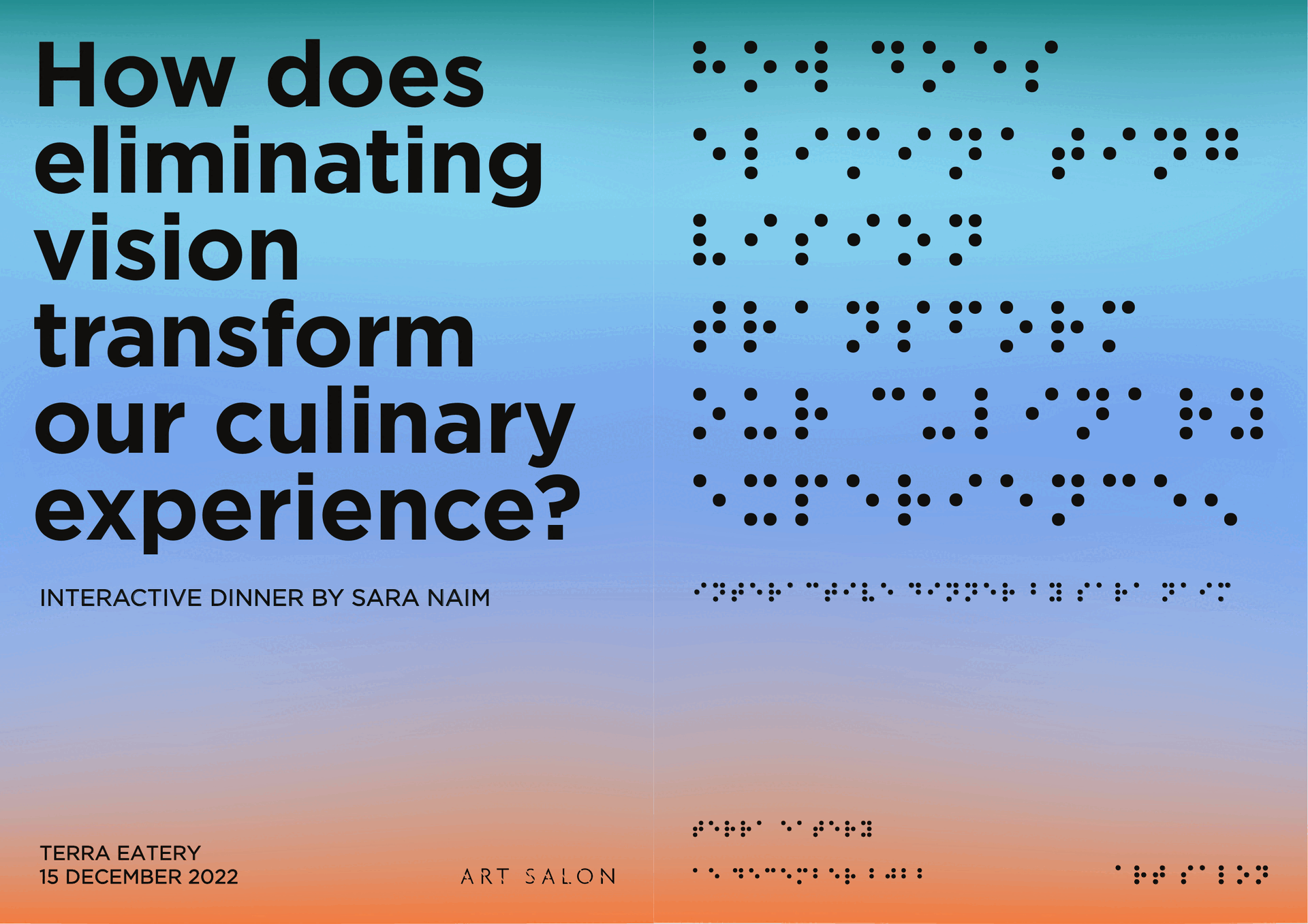 I designed menus and invitations for a VIP event at the Art Salon in Dubai, blending English and Braille typography.The Braille was embossed for tactile accessibility.